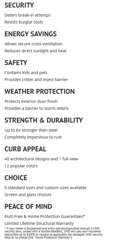 Designed to Deliver, Maximum Return. Titan Premium Security Doors are designed to deliver maximum return on your home improvement investment delivering a host of benefits – built-to-suit your needs – season after season, year after year. 1 2 ... 4 ►